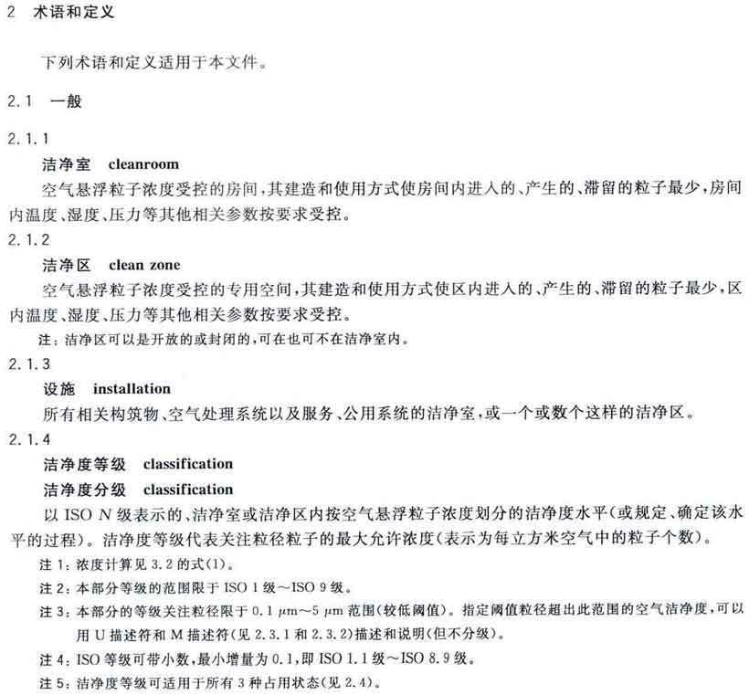潔凈室及相關(guān)受控環(huán)境第1部分:空氣潔凈度等級(jí) GB/T25915.1-2010