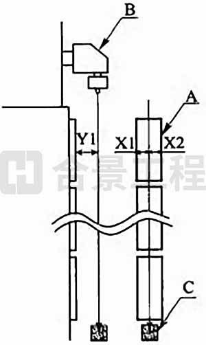 1 調(diào)整送棒裝置的XY單元獲得設(shè)備中心線(xiàn)(圖8.8.4-1),應(yīng)使中心線(xiàn)與基準(zhǔn)板間距Y1符合設(shè)備要求尺寸,中心線(xiàn)處于基準(zhǔn)板中心位置,且X1=X2。